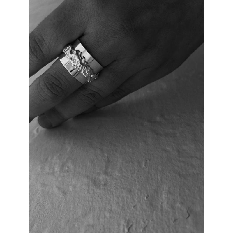 POISE är en kraftfull ring med ett levande mönster. Eftersom silvret formas vid uppvärmning blir det organiska mönstret inte det andra likt.